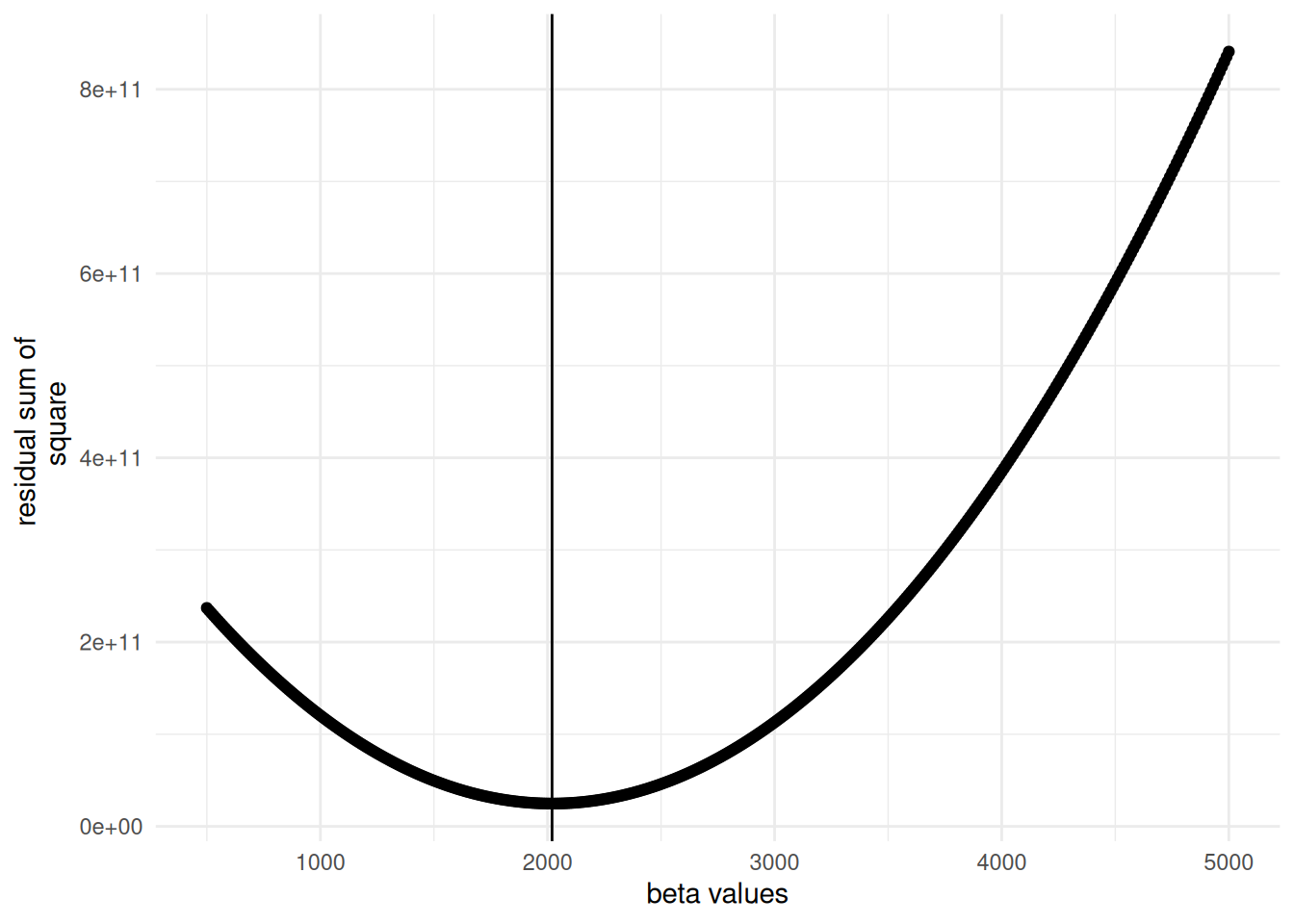 ylab("residual sum of \n square") + xlab("beta values")
